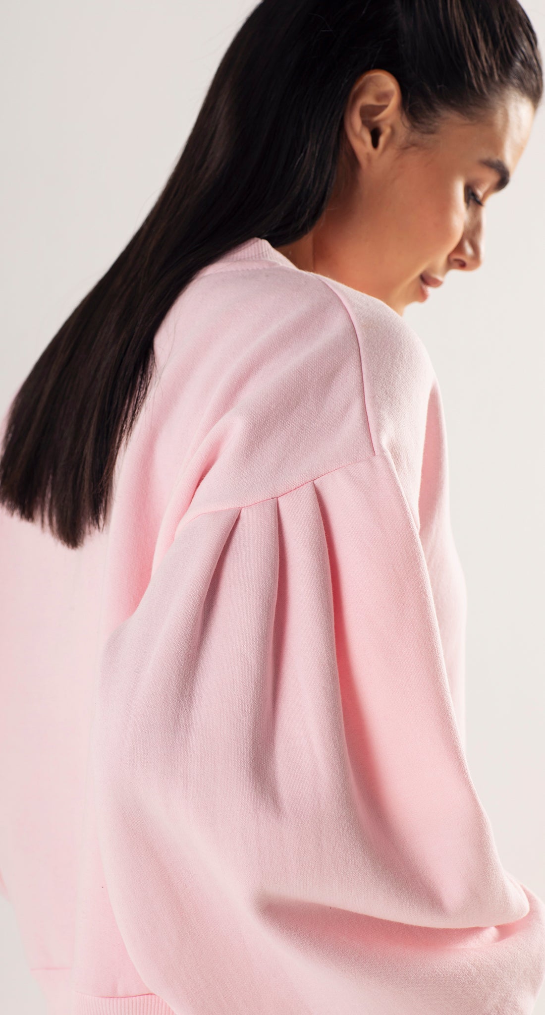 Confeccionado em tecido felpudo, proporciona uma deliciosa sensação de maciez e aconchego. O modelo possui gola redonda, caimento soltinho e um charme especial: mangas bufantes com pregas delicadas, que adicionam um volume sutil e elegante ao visual.