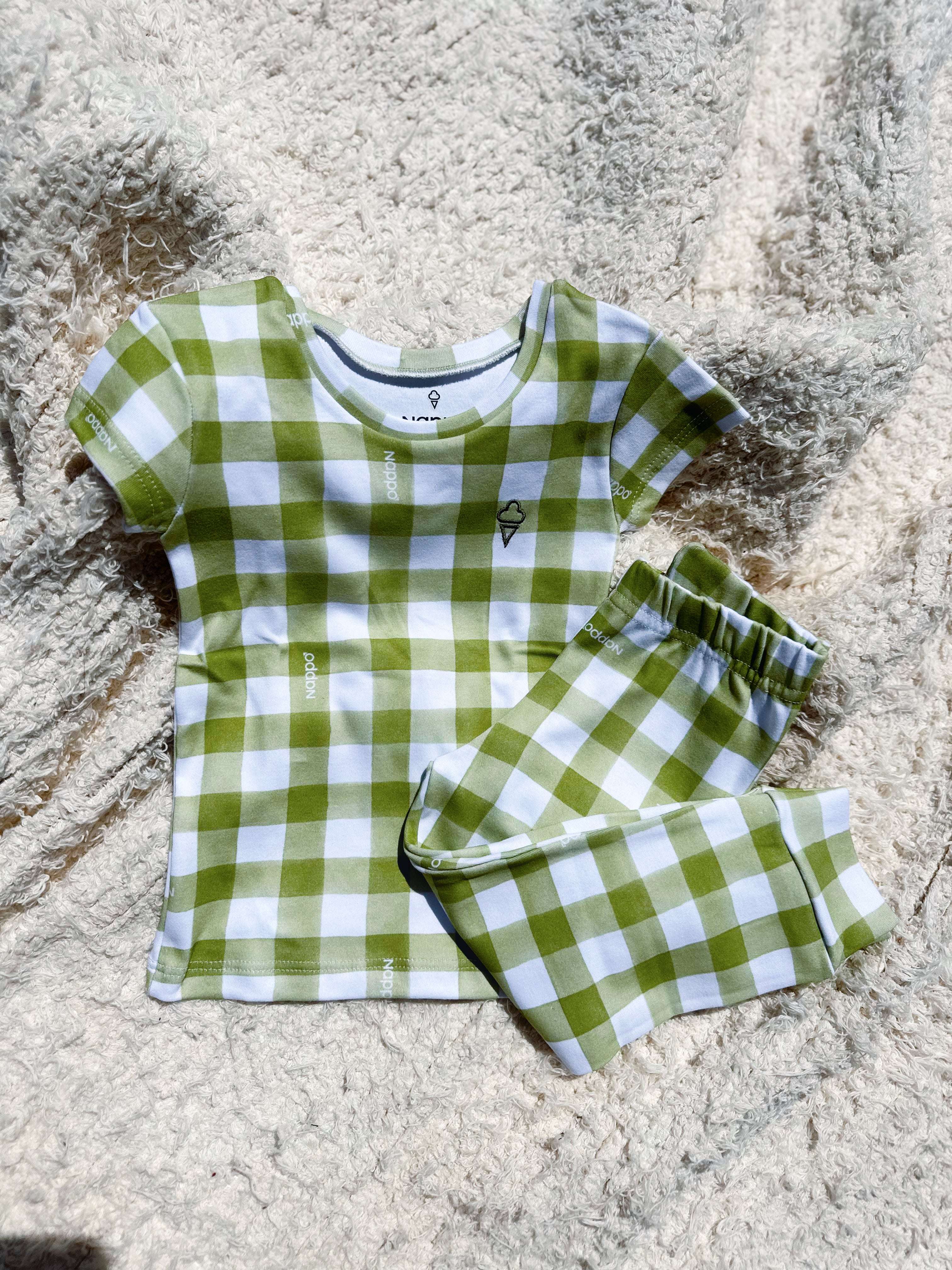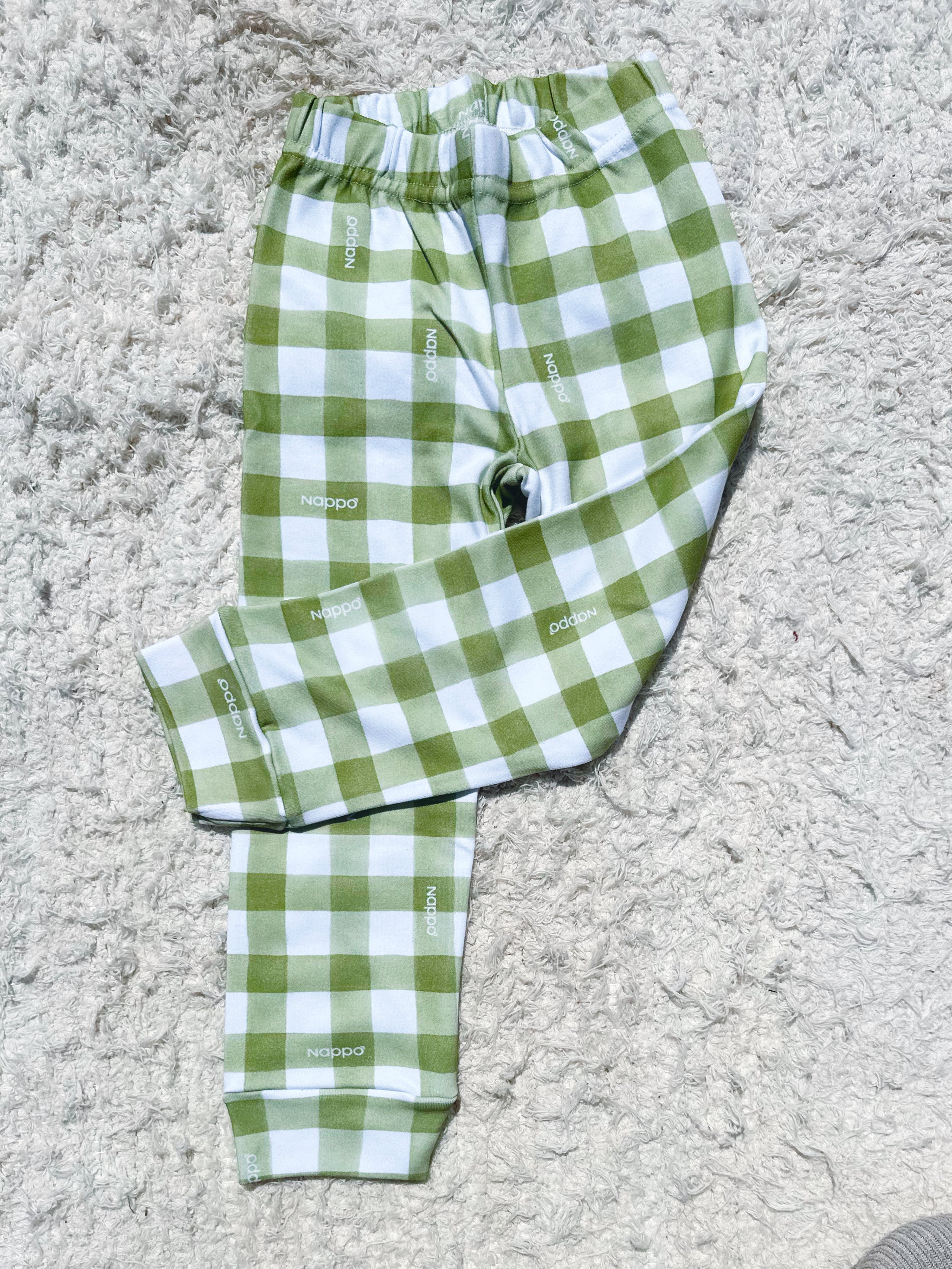 O conjunto infantil xadrez verde da Nappô une conforto e praticidade para os pequenos;